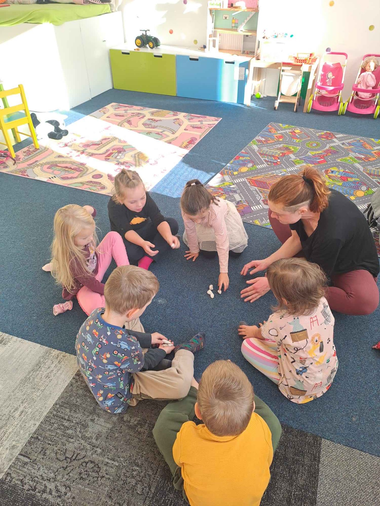 S dětmi probíráme tematické okruhy, které jim do života přináší poznání všech dovedností a znalostí ladících k jejich věku. Učí se chápat proměny přírody, ladit se na roční období, čas i tradice. Učí se spolupracovat s ostatními a vlídnou formou se učí provázanostem ve vztazích a v sociálním prostředí. Procházejí upevňováním důležitých návyků, které jim přináší vnitřní pohodu a klid. Máme pro děti nachystaný celoroční program jak uvnitř tak i venku, kde jsou děti samozřejmě nejšťastnější. K dispozici máme vlastní zahradu s pískovištěm a jinými prvky, v docházkové vzdálenosti je místní velké hřiště, koupaliště a lesní amfiteátr.
